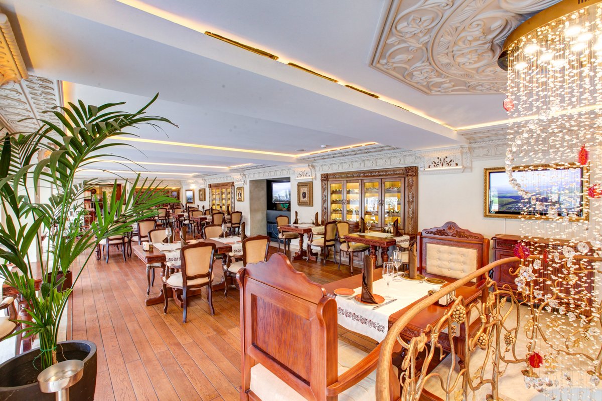В этом ресторане довольно богатое меню, вкусные блюда. Я заказывал кебаб и вино, мне всё понравилось. Обслуживание на уровне, официанты работают быстро. Очень уютный, хороший ресторан. Особенно нравится бар при входе. Мне нравится здесь проводить время, да и территориально удобно. Всё замечательно.